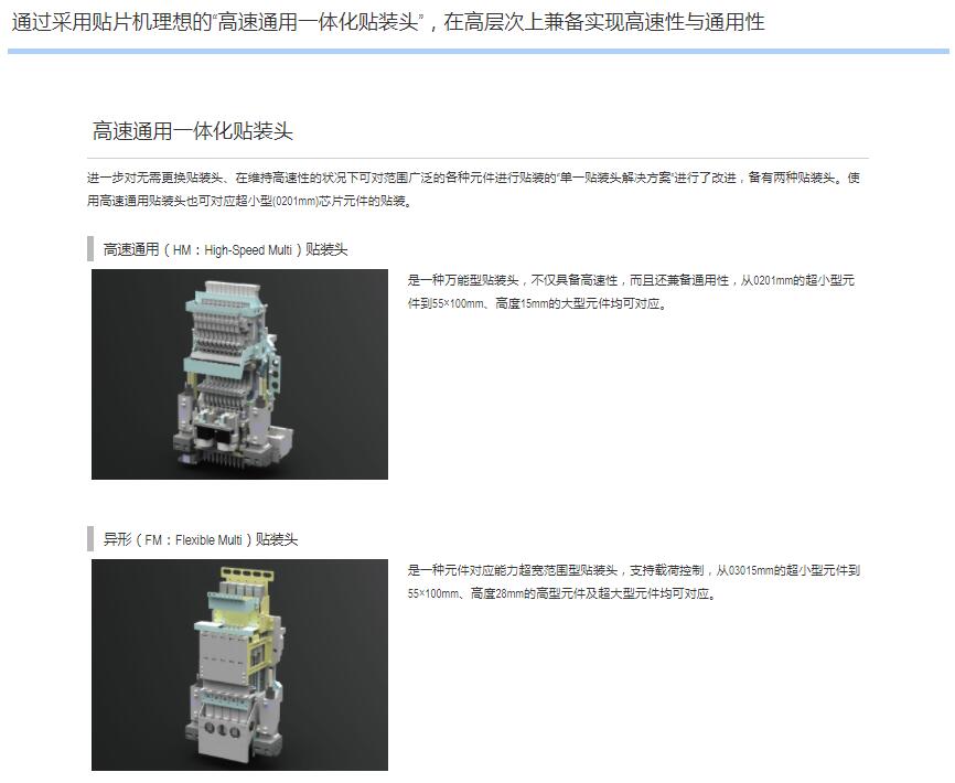 3."高速通用一體化貼裝頭”同時實現高速性與通用性,提供理想的解決方案"。