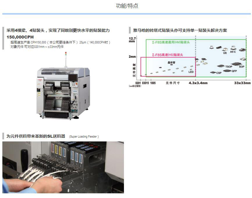 2.以4梁、4臺貼裝頭實現同級快速150,000CPH。