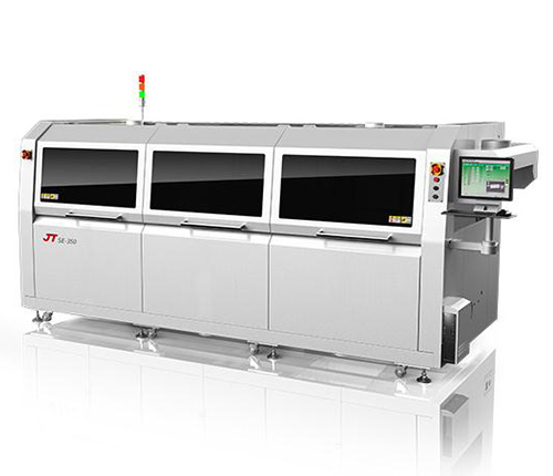 外形流線型設計,內部模塊化設計,適合SMT及直插元件的無鉛焊接。 噴霧系統采用離心風機上抽風,防止助焊劑滴到PCB上。 助焊劑緩沖罐感應器外置,更加可靠耐用。 標配冷風刀,防止助焊劑霧氣向外擴散,減少污染。 雙波控制采用無極變頻技術,可獨立控制波峰高度。 1/4HP大功率波峰馬達,更大波峰高度可達15mm。 具有超溫聲光…